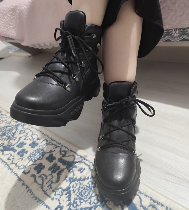 Siyah, bağcıklı, kauçuk malzemeden platform topuklu botlar, günlük kullanıma uygun pürüzsüz ve desensiz gotik tarzda.