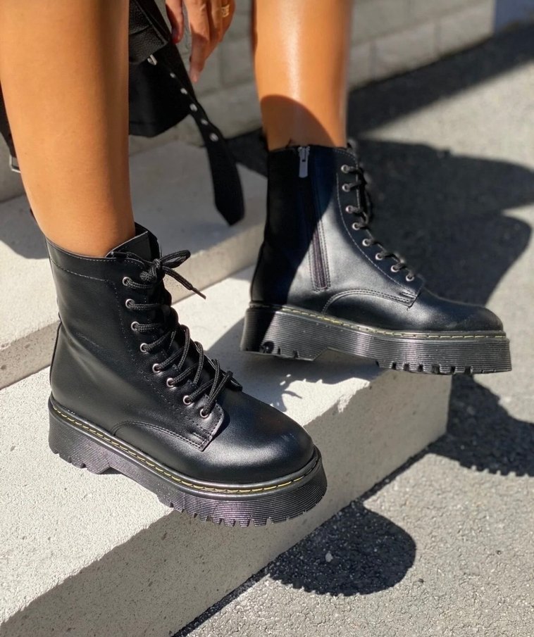 Siyah bağcıklı, kauçuk tabanlı platform topuklu botlar. Gotik tarzıyla günlük kullanıma uygun, rock punk havası taşıyor.