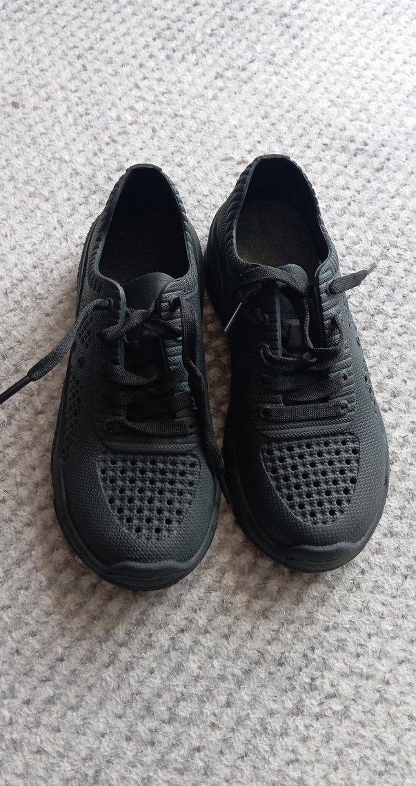 Siyah bağcıklı hem denizde hem de normalde kullanılabilen 38 37 no yada olur ayakkabıyı sadece denize giderken bir kere kullanıldı her kız hem erkek için uygun