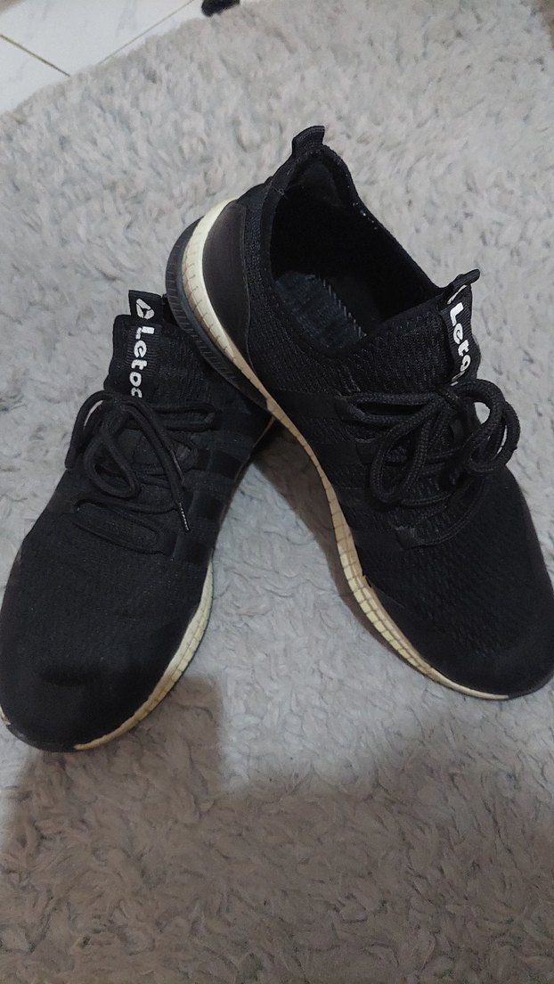 Siyah renkte, bağcıklı ve ince topuklu spor ayakkabı. Kauçuk tabanlı, desen içermeyen rahat bir modeldir.
