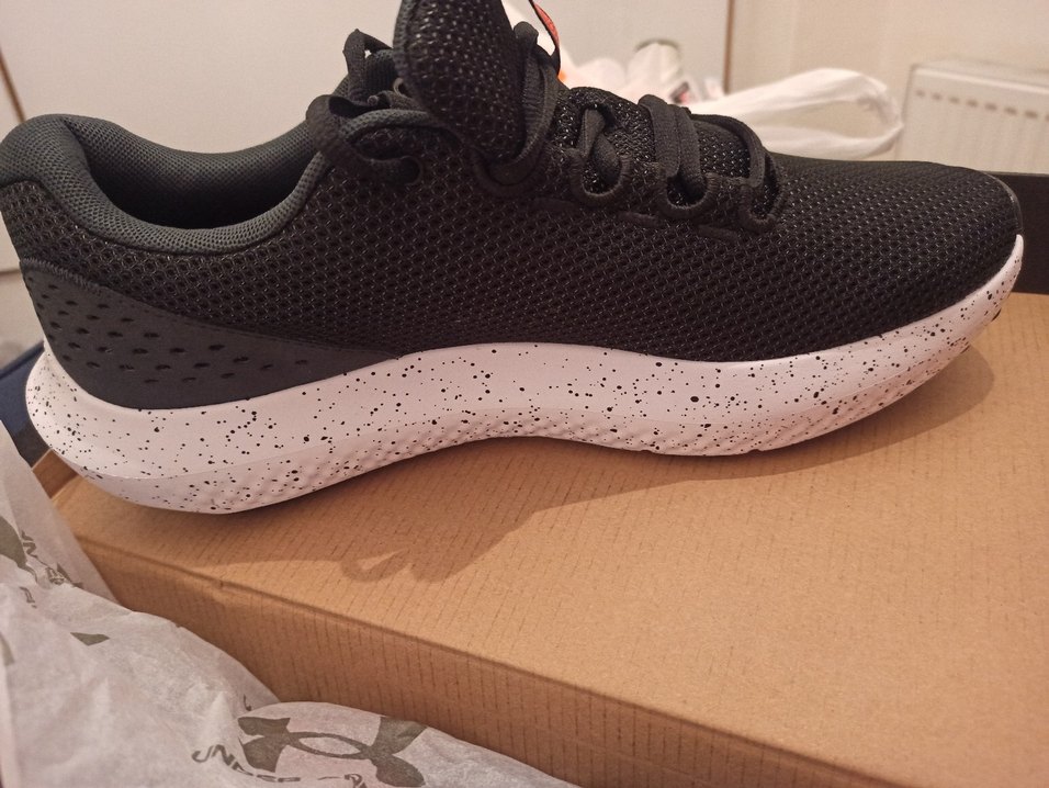 Siyah bağcıklı kadın spor ayakkabı, koyu renk file üst yüzey ve beyaz benekli kauçuk taban ile stiletto topuklu, trend sokak stili için uygun.