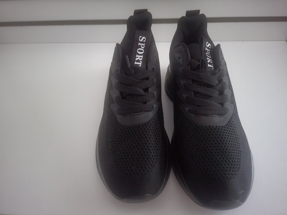 Bağcıklı ve stiletto topuklu siyah erkek spor ayakkabısı. Dil kısmında 'SPORT' yazısı bulunur. Sokak giyimine uygun şık tasarım.