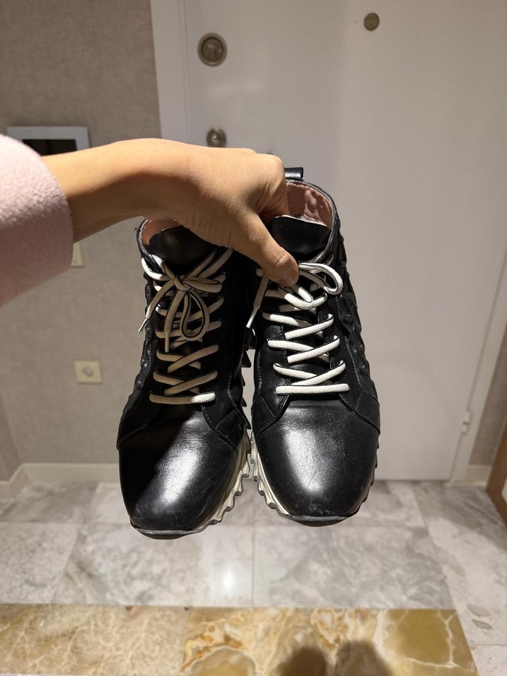 Siyah bağcıklı stiletto topuklu kadın spor ayakkabı, kauçuk malzemeden üretilmiştir. Trendy casual sokak stili ve günlük kullanım için uygundur. EN FAZLA 3 KERE GİYDİM. 37 numara