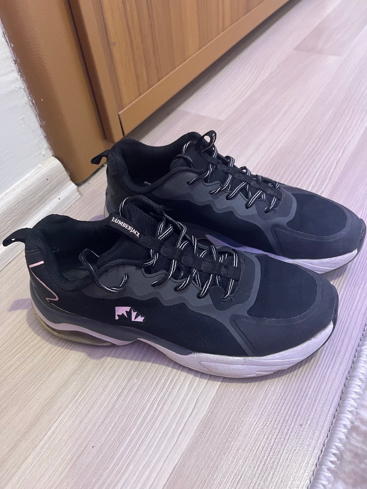 Siyah renkte, bağcıklı ve stiletto topuklu kadın spor ayakkabısıdır. Kauçuk tabanlı, sokak modasına uygun ve sportif kullanıma uygundur.