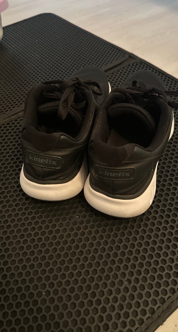Siyah bağcıklı, stiletto topuklu kadın spor ayakkabısı. Kauçuk tabanlı, sokak stili ve spor için uygun. ♀️