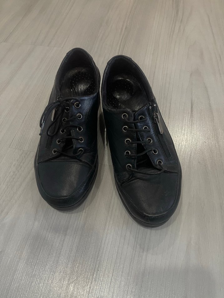 kadın spor ayakkabısı. Minimalist goth tarzında, trend günlük deri ayakkabı çok az kullanılmıştır