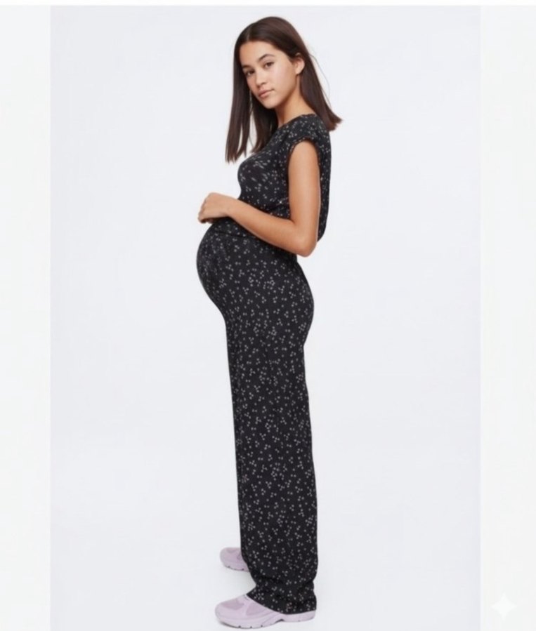 Siyah bağlama desenli, kısa kollu ve V yaka, ince kesim hamile tulumu. Yumuşak sentetik kumaştan günlük kullanıma uygun. Rahat ve şık. (Her bedene uygun.)