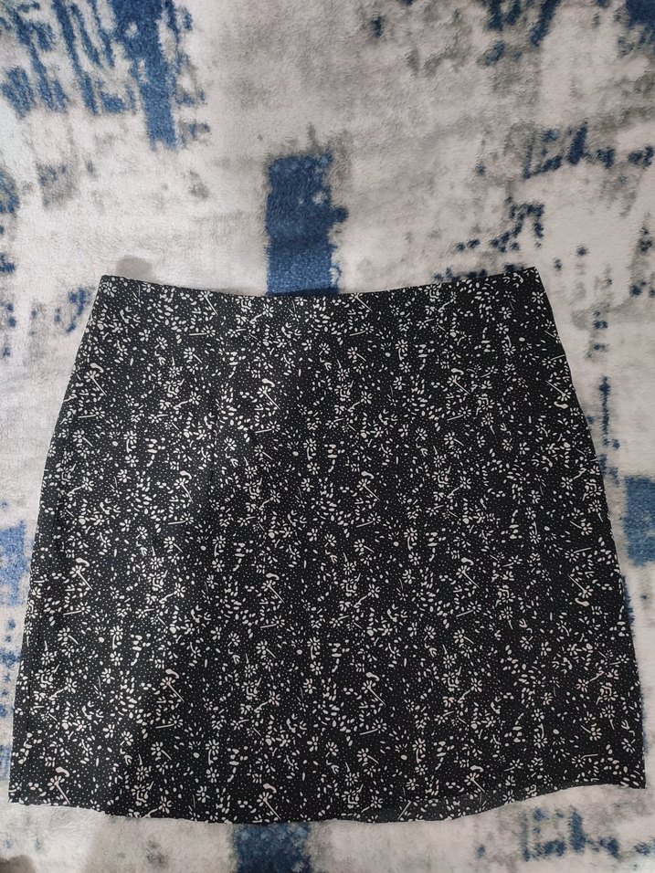 Yumuşak sentetik kumaştan, siyah bağlama desenli, dar kesim mini etek
