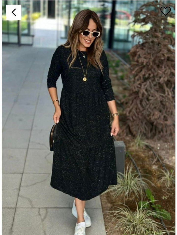 Siyah, uzun kollu, salaş kesim ve yuvarlak yakalı bu uzun elbise, sentetik kumaştan yapılmıştır. Koyu bağlama desenleriyle günlük sokak stiline uygundur. Effortless chic tarzı sunar. M&S MARKS AND SPENCER Marka Orjinal ürün Etiket kesik pamuklu kumaş, simli elbise Xxl beden ölçüleri Göğüs 44 cm Boy 104cm SINIRLI SAYIDA XXL
