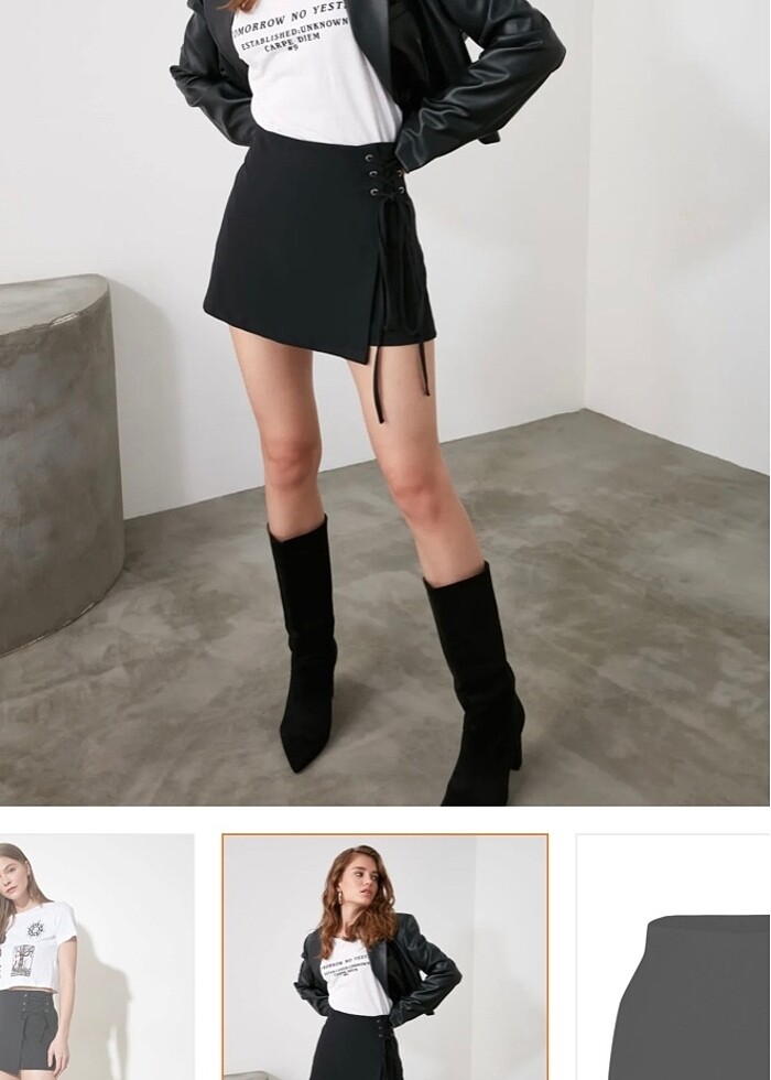 Siyah Bağlama ve Kuşgözü Dtylı Şort Etek