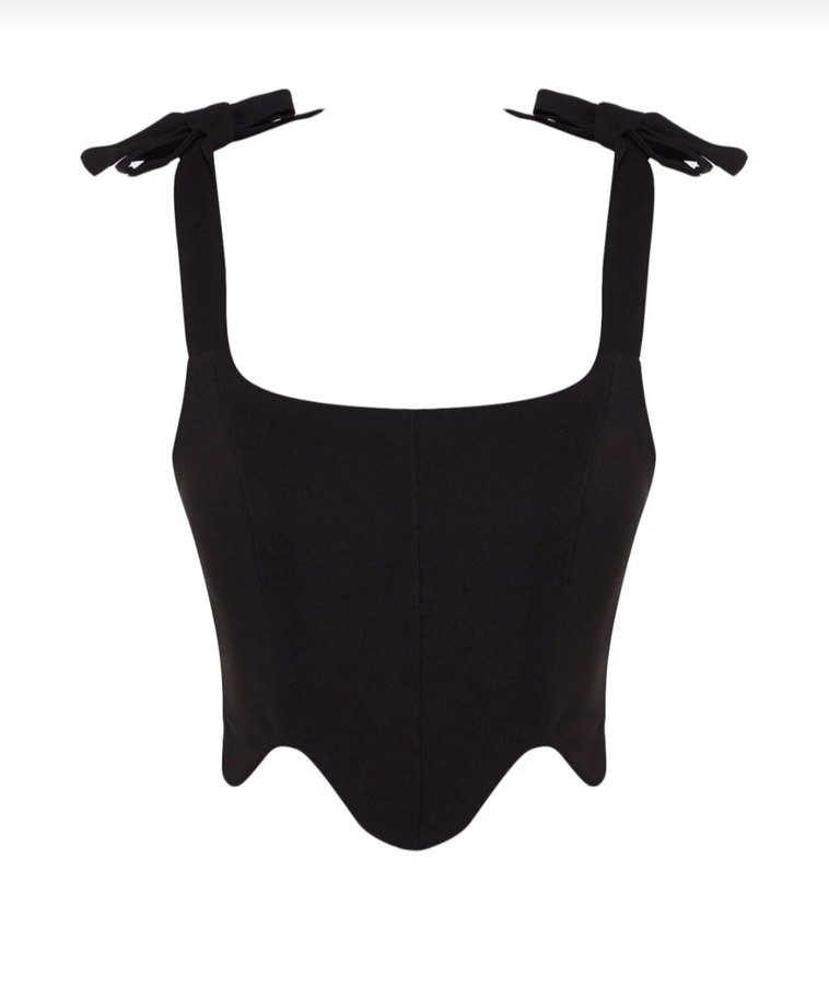 Bağcıklı askıları ve tek renk siyah tasarımıyla, sentetik kumaştan yapılmış oturmalı gotik stil büstiyer. Romantik akşamlar için uygun.