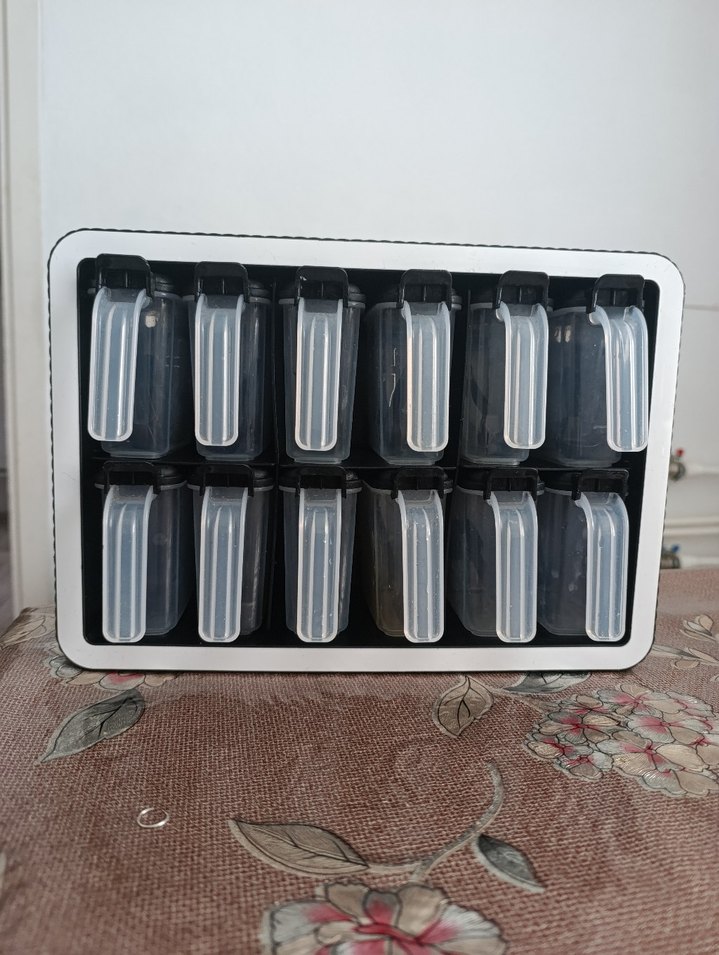 Siyah baharatlık seti, 12 adet şeffaf ve kaşıklı çok az kullanıldı duvara asılıyor