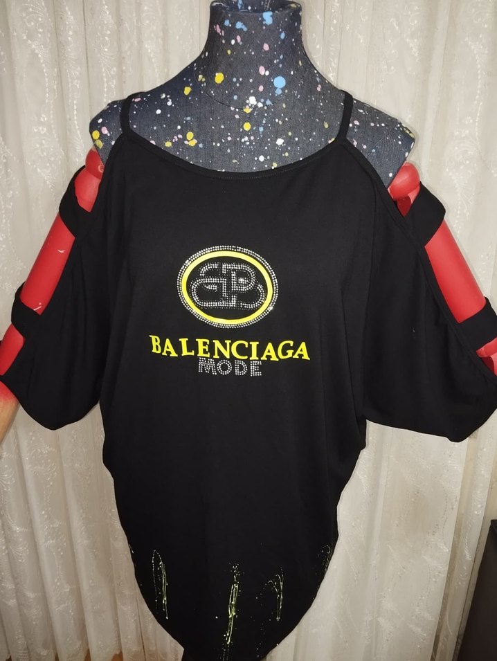 Kısa kollu, bol kesim, siyah tişört.Balenciaga yuvarlak yakalı.