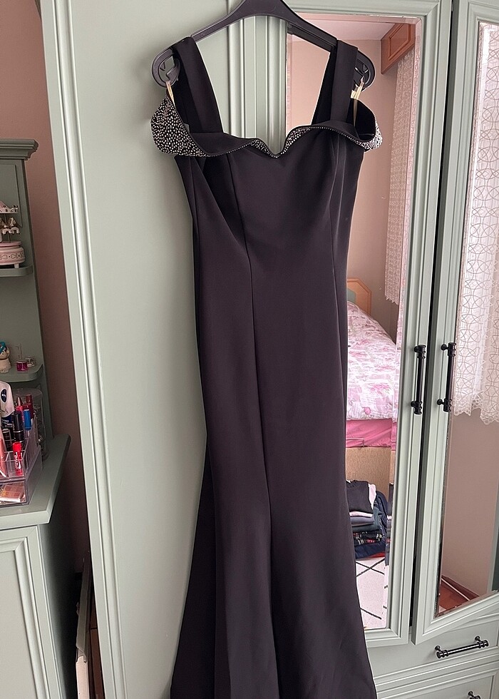 Sadece 1 kere kullanılmış temiz siyah balık abiye