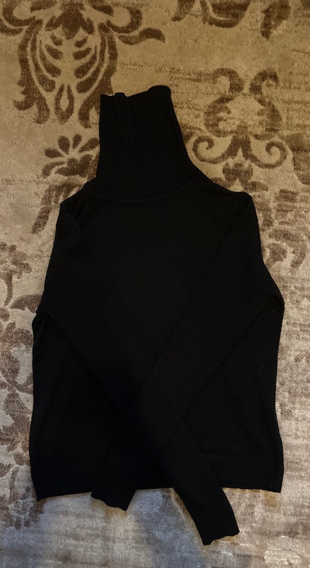 Siyah, balıkçı yakalı ve uzun kollu, vücuda oturan kadın kazağı. Yumuşak ve sıcak kumaştan,rahat bir model. Günlük şık tarz için uygundur.
