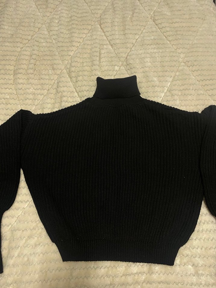 Siyah balıkçı yaka, uzun kollu ve fitted kesim triko kazak. Rahat sokak stili ve günlük kullanıma uygun normal boyda.