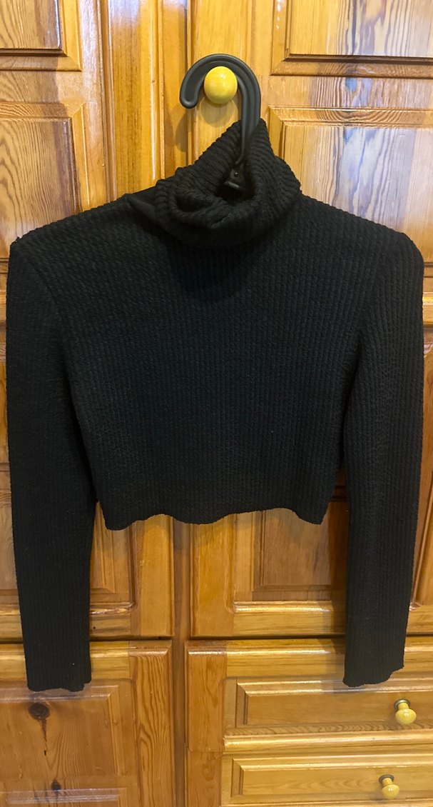 Siyah yün balıkçı yaka, uzun kollu, örgü dokulu, vücuda oturan rahat ve şık goth tarzı kadın kazak.