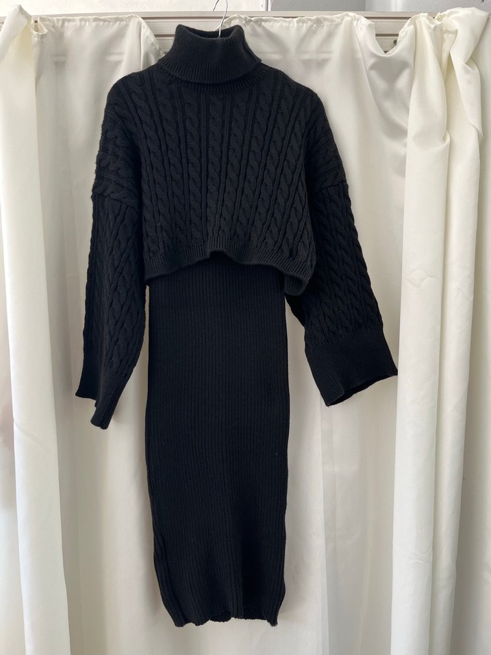 Siyah triko kumaştan, balıkçı yaka ve uzun kollu, vücuda oturan kesimiyle rahat ve şık uzun elbise. Normcore tarzda, günlük kullanıma uygundur.