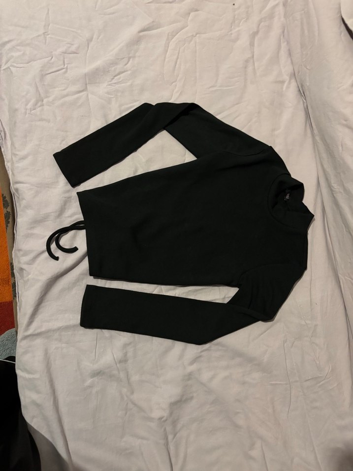 Siyah Balıkçı Yaka Uzun Kollu Sırt Dekolteli Crop