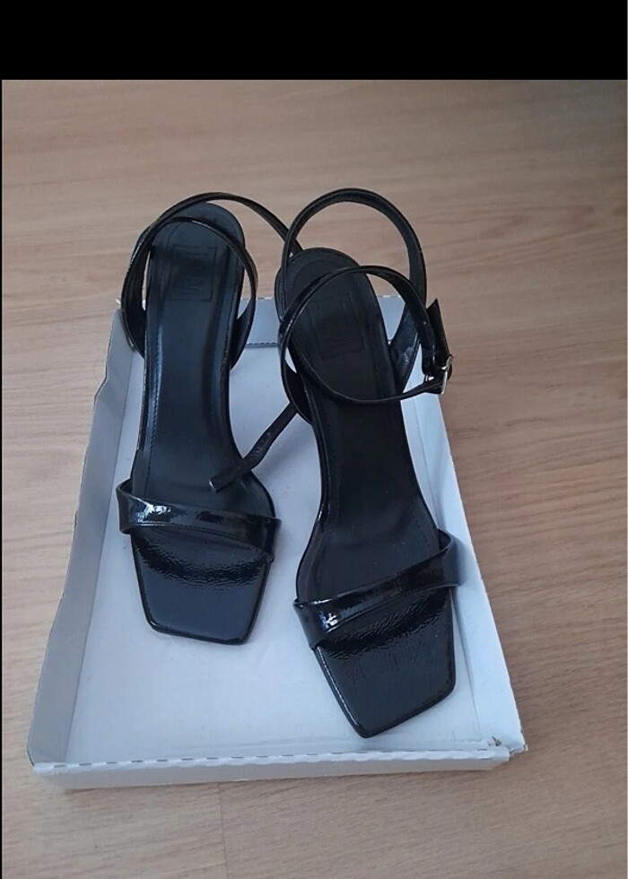 Siyah bantlı topuklu ayakkabı