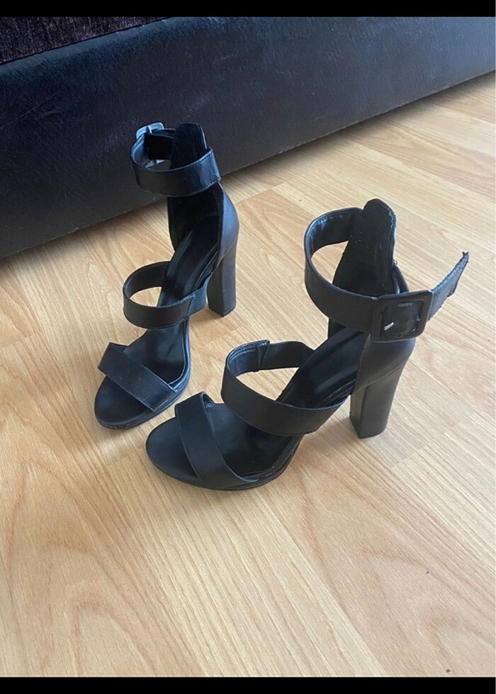 Siyah bantlı yüksek topuklu ayakkabı