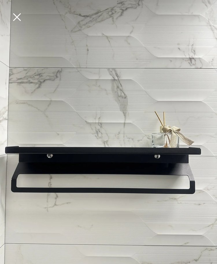 Siyah renkte, düz yüzeyli ve alt kısmında bar bulunanan banyo düzenleyici
