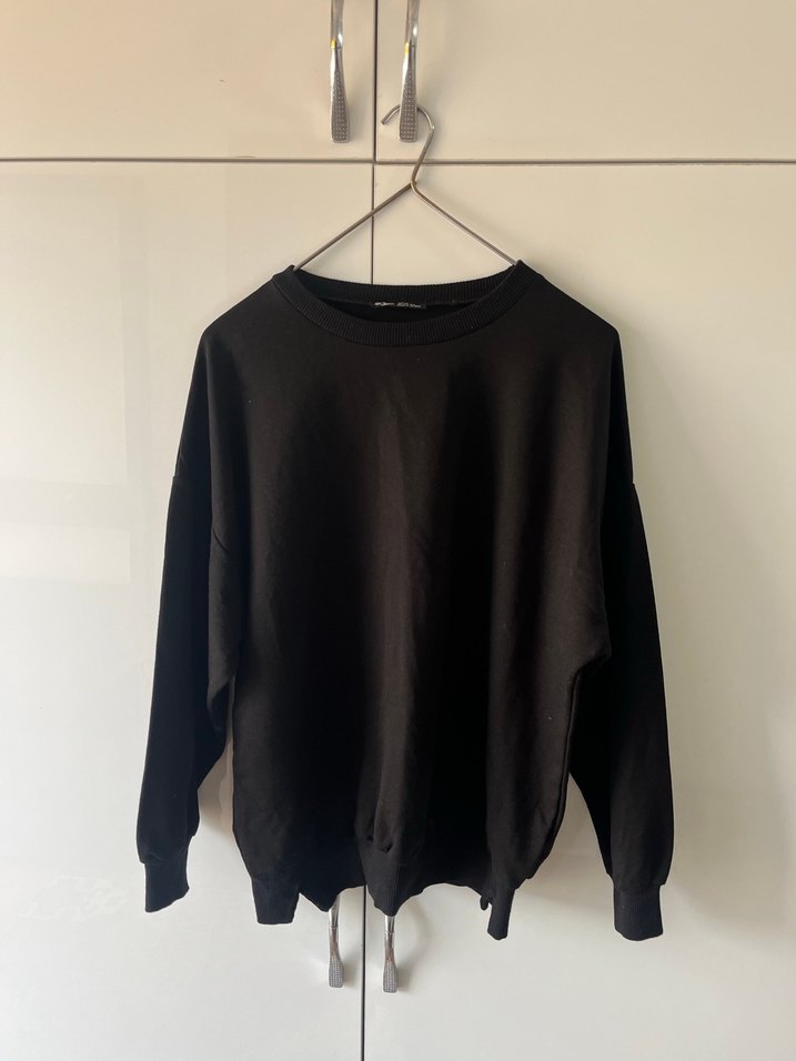 Siyah Basic Kadın Keten Sweat