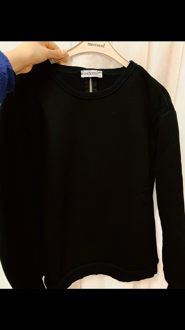 Yumuşak pamuk kumaştan, uzun kollu, bisiklet yaka, siyah bol kesim basic sweatshirt. Günlük sokak stiline uygun düz tasarım. 'meristond' etiketi bulunur.