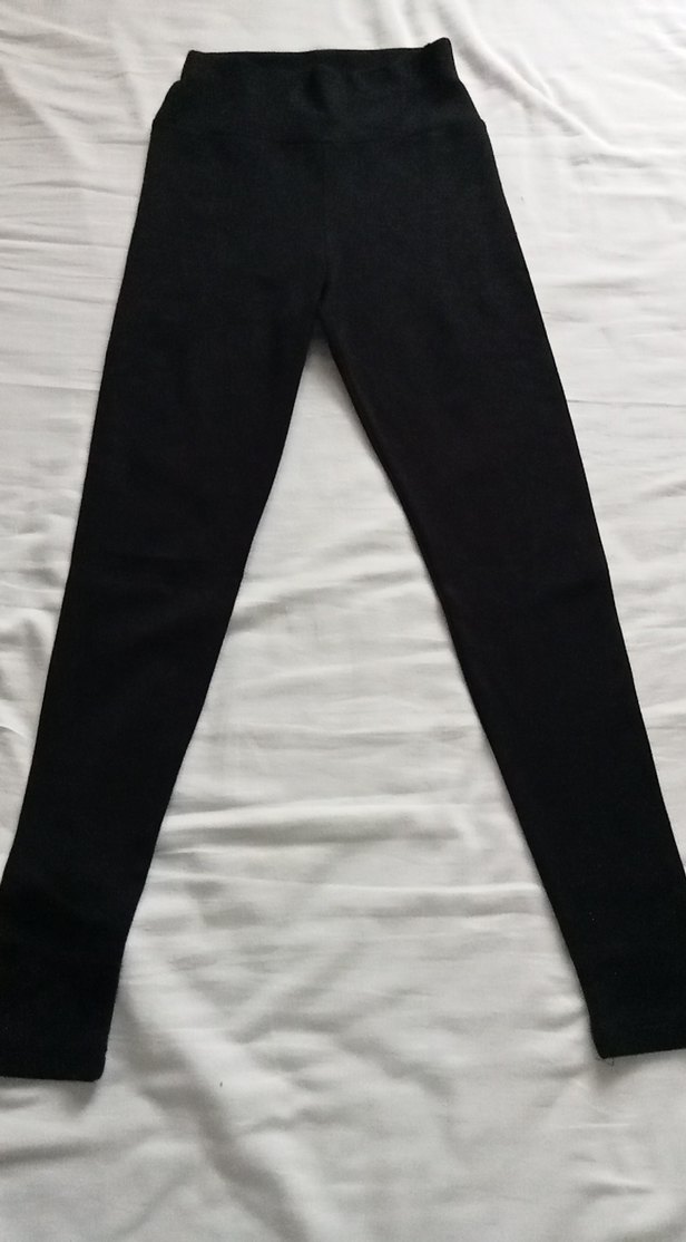 Siyah, düz, vücuda oturan, sentetik kumaştan midi uzunluğunda kadın tayt. Günlük kullanım için rahat ve şık bir seçim.