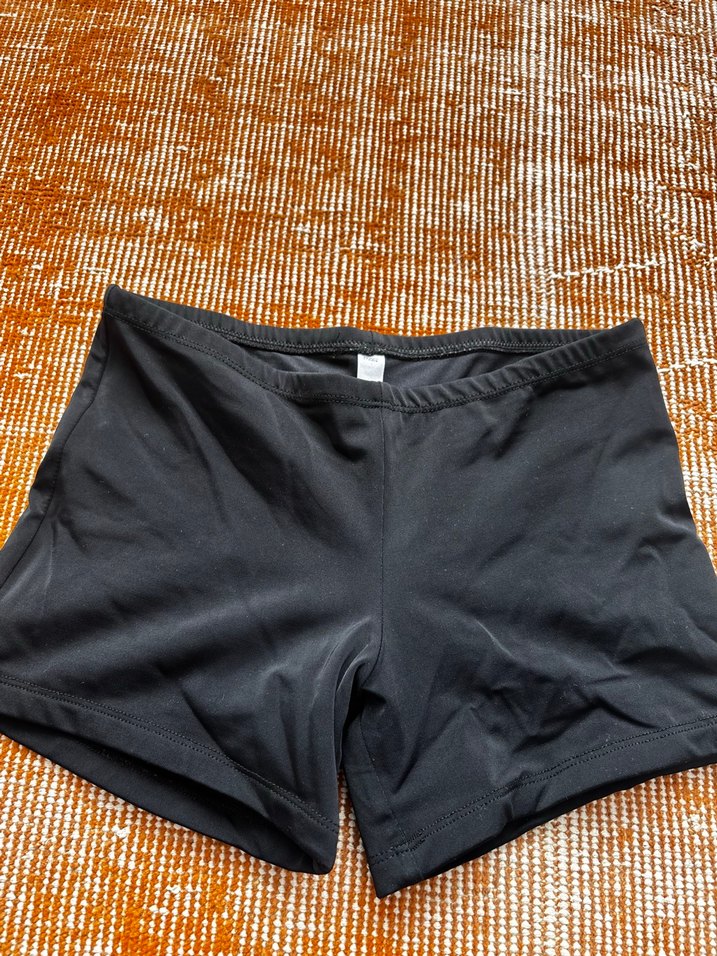 Siyah, elastik bel bantlı, saten dokulu, mini boy basic deniz şortu. Spor ve streetwear tarzına uygundur.