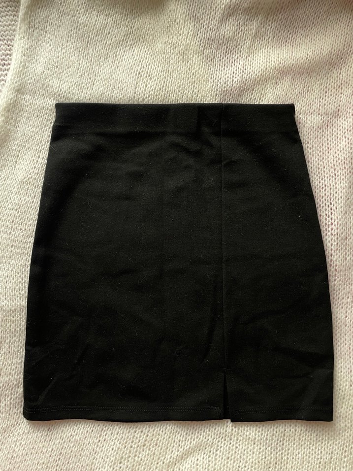 Siyah, düz ve basic tasarımlı, sentetik kumaştan üretilmiş, midi uzunlukta, vücuda oturan mini etek. Ofis ve sokak modasına uygun, zahmetsiz şıklık sunar.