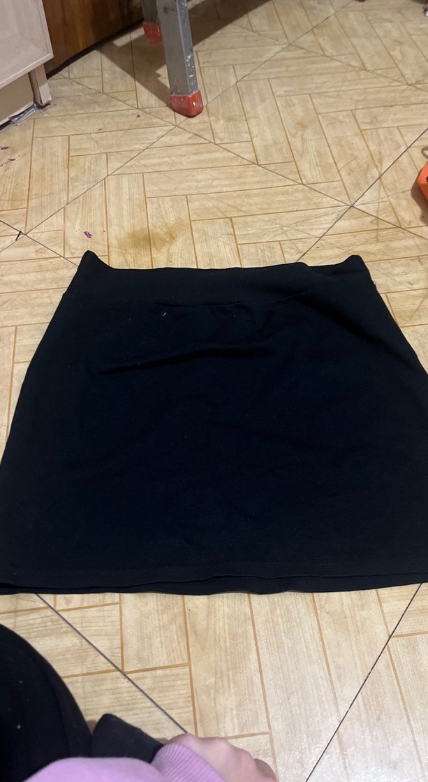 Siyah renkli, düz ve vücuda oturan, sentetik kumaştan mini etek, minimalist gotik tarz için uygun.