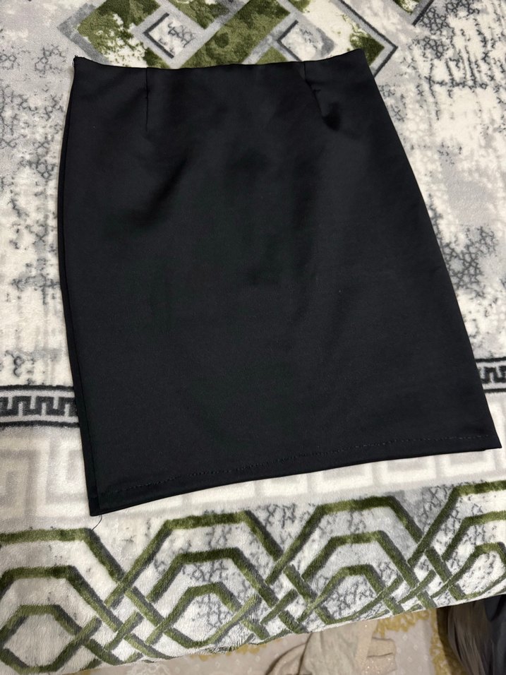 Düz siyah, vücuda oturan mini etek, hiçbir deformesi yoktur