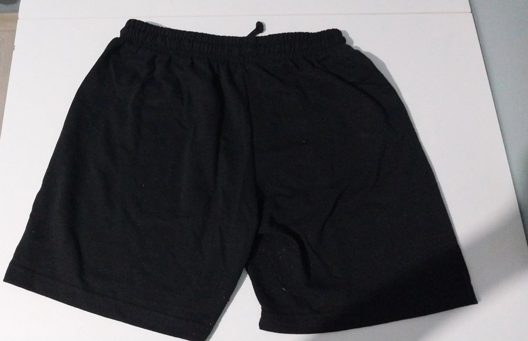 Elastik bel bantlı, sentetik kumaştan siyah şort. Midi boy ve sade tasarımıyla spor ve günlük kullanıma uygundur. unisex