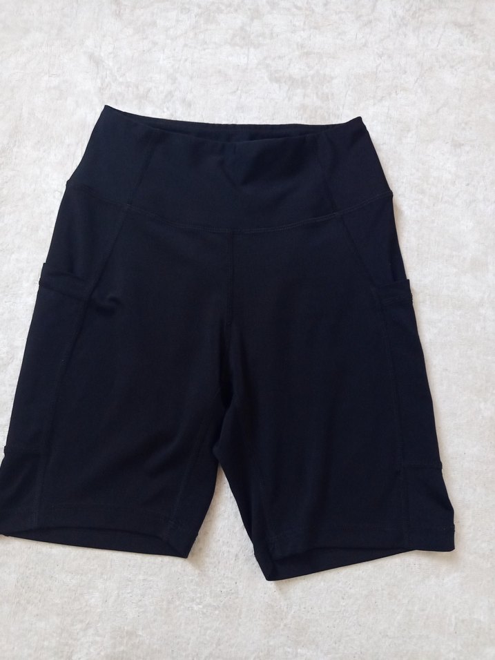 Düz siyah, sentetik kumaştan üretilmiş, spor ve sokak stiline uygun, basic ve mini kesim hamile şortu.