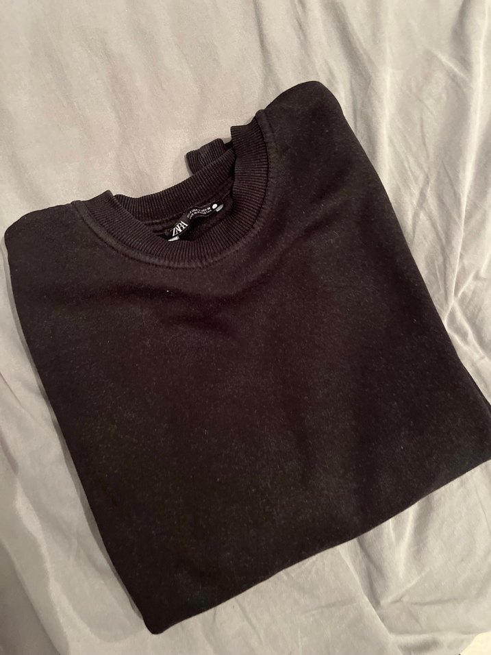 Siyah, yuvarlak yaka, uzun kollu ve bol kesim erkek sweatshirt. Yumuşak ve sıcak kumaştan, günlük rahat kullanım için uygundur.