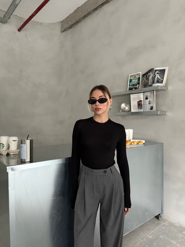 Penye kumaş, bisiklet yaka, uzun kollu basic tişört