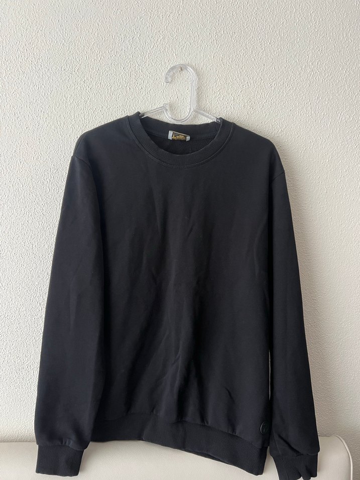 Yumuşak yuvarlak yaka ve uzun kollu, siyah sweatshirt. Minimalist, desensiz tasarımıyla günlük kullanıma uygundur.
