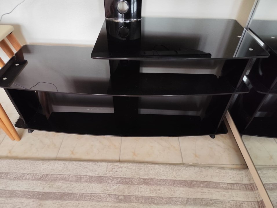 Siyah baskılı desenli basamak TV ünitesi şık ve güzel çok iyi durumda