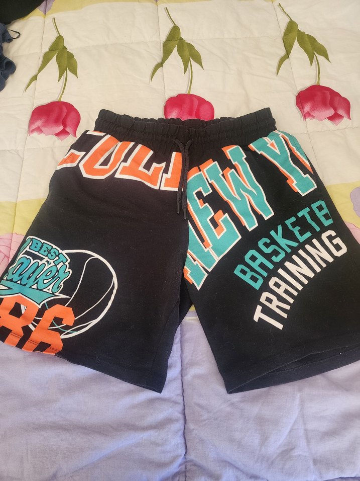 Rahat kesim bayan şort, renkli baskılı basketbol temalı desenlerle. Yumuşak ve sıcak kumaştan, elastik bel bantlı.