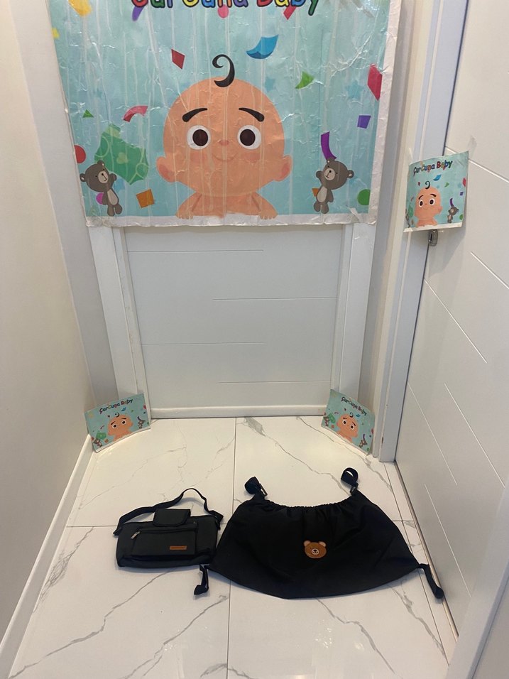 Siyah Baskılı Bebek arabasına takılan Çantas