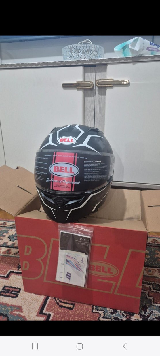Lastik malzemeden yapılmış, tokalı siyah baskılı biker kask. Sokak stili ve rock punk havası taşıyor. Bell logosu bulunur.Çekilişten çıktı.yeni hiç kullanılmadı.fotoğraflarda nasıl gözüküyosa öyle gelicek.beden L