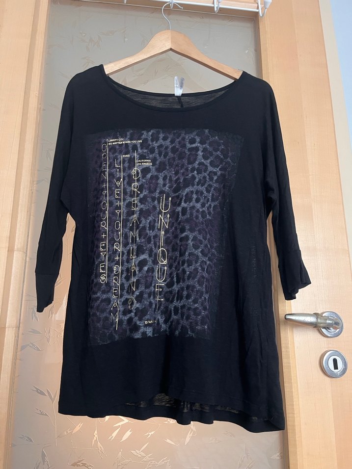 Uzun kollu, yuvarlak yakalı, baskılı siyah bluz Rahat kesimiyle günlük kullanıma uygundur.