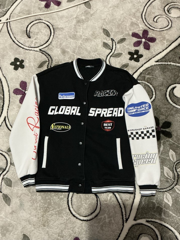 Siyah fleece kumaştan, düğmeli ve baskılı logolu uzun kollu, yuvarlak yakalı, bol kesim kadın ceket. Günlük kullanıma uygun şık model.