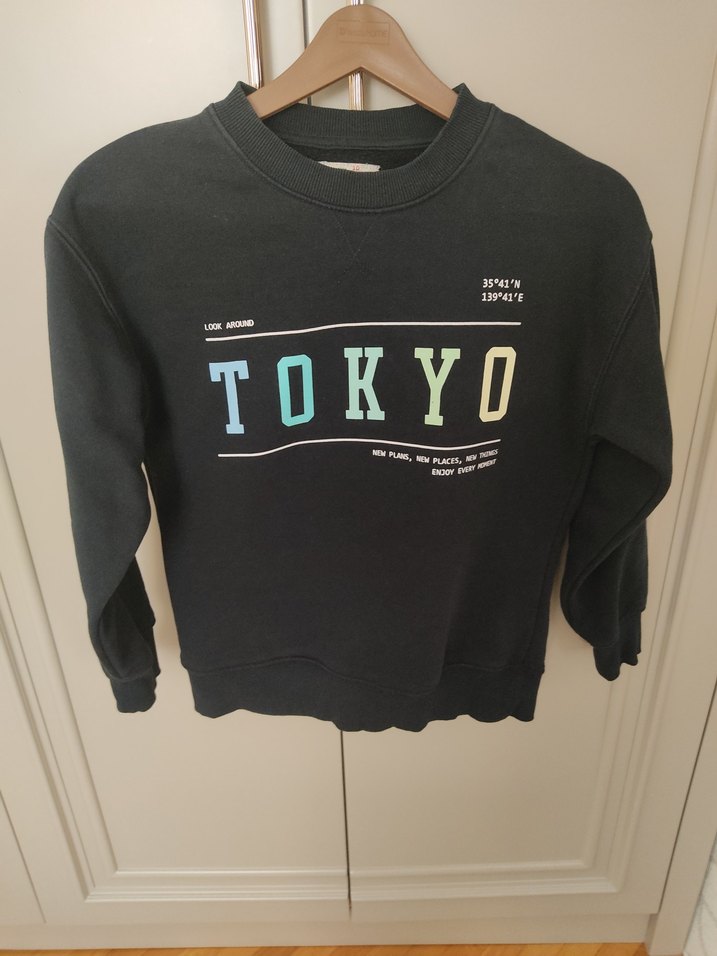 Siyah, pamuklu, uzun kollu çocuk sweatshirt. Normal kesim ve bisiklet yaka. Önünde renkli 'TOKYO' baskısı bulunur. Günlük sokak stiline uygun.