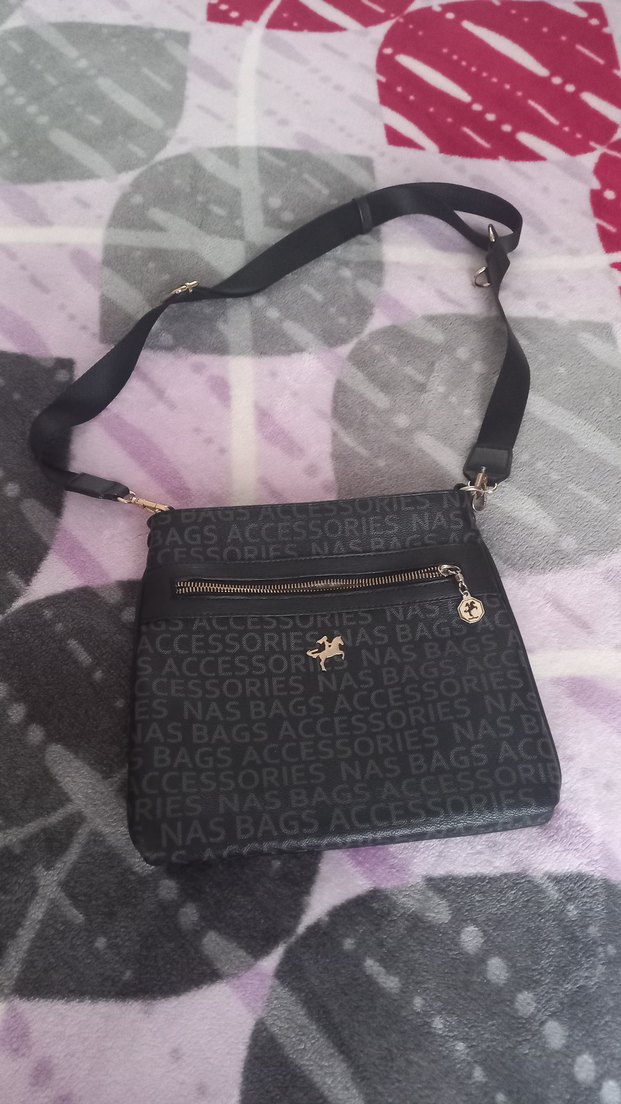 Siyah Baskılı Deri Kadın Çanta