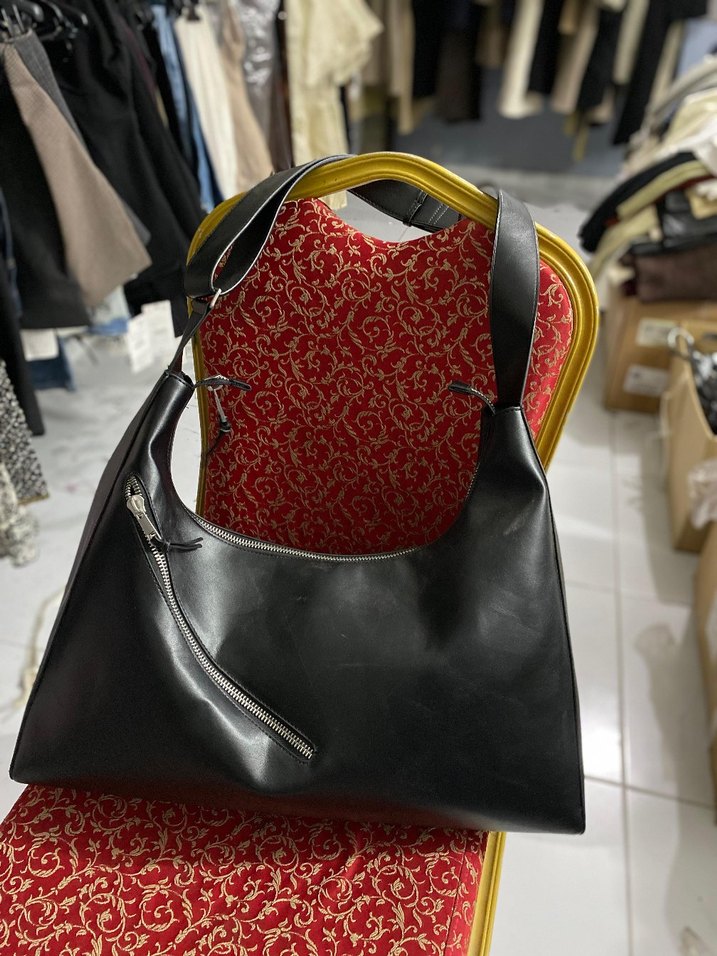 Siyah baskılı deri kadın çanta, fermuarlı cepli, sokak stiline uygun ve günlük kullanım için idealdir.