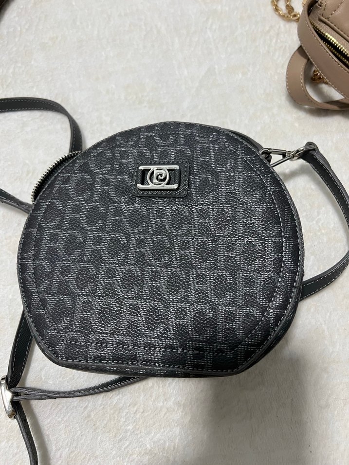 Siyah Baskılı Deri Yuvarlak Kadın Çanta