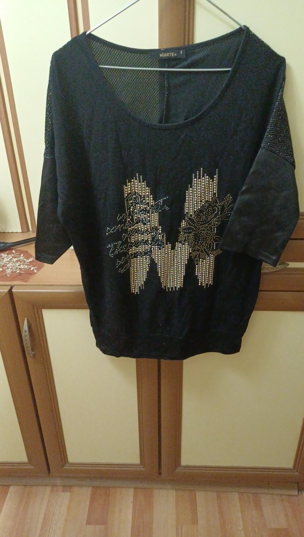 Siyah renkli, uzun kollu, bisiklet yaka, baskılı ve örme kumaştan yapılmış bol kesim Günlük kullanım için uygundur. dirsek kol