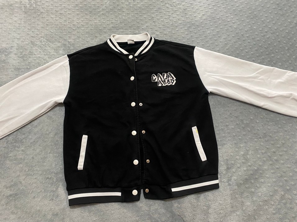 Siyah baskılı, düğmeli ve beyaz kollu kız çocuk ceketi. Rahat kalıp ve yumuşak kumaşla, trend görünüme uygun.